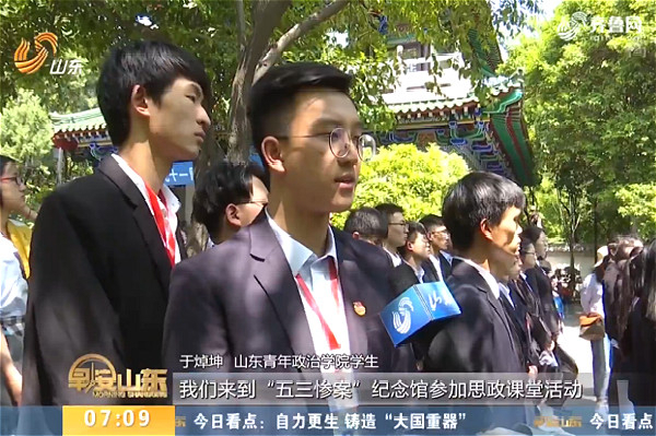 5月3日,我校师生在济南“五三惨案”纪念堂举行特别主题团日活动。学校团委专兼职团干部,青年领导力培训班学员,学生组织、社团成员等30余名青年师生共同参加了团日活动。在“五三惨案”纪念钟前,校团委兼职副书记、yl6776永利集团青年教师邵西梅以“五三惨案”为主题向大家现场讲授微团课。山东卫视《早安新闻》、齐鲁网等主流媒体,对本次活动进行了深入报道。