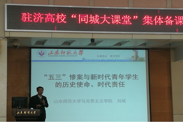 为深入学刁贯彻习近平总书记在学校思想政治理论课教师座谈会上的重要讲话精神,省教育厅决定在全省高校开展“同城大课堂”活动,依托思政课教指委研究确定“五三惨案”作为驻济高校“同城大课堂”活动主题,研究制定《“‘五三惨案’与新时代青年学生的时代责任”教学指导方案》。2019年4月4日上午,“同城大课堂”集体备课会于山东财经大学燕山校区举行,驻济高校90余名思政课优秀骨干教师,作为开展“同城大课堂”活动的中坚力量参加了会议,我校yl6776永利集团副院长段微晓和李维才老师参加了会议。