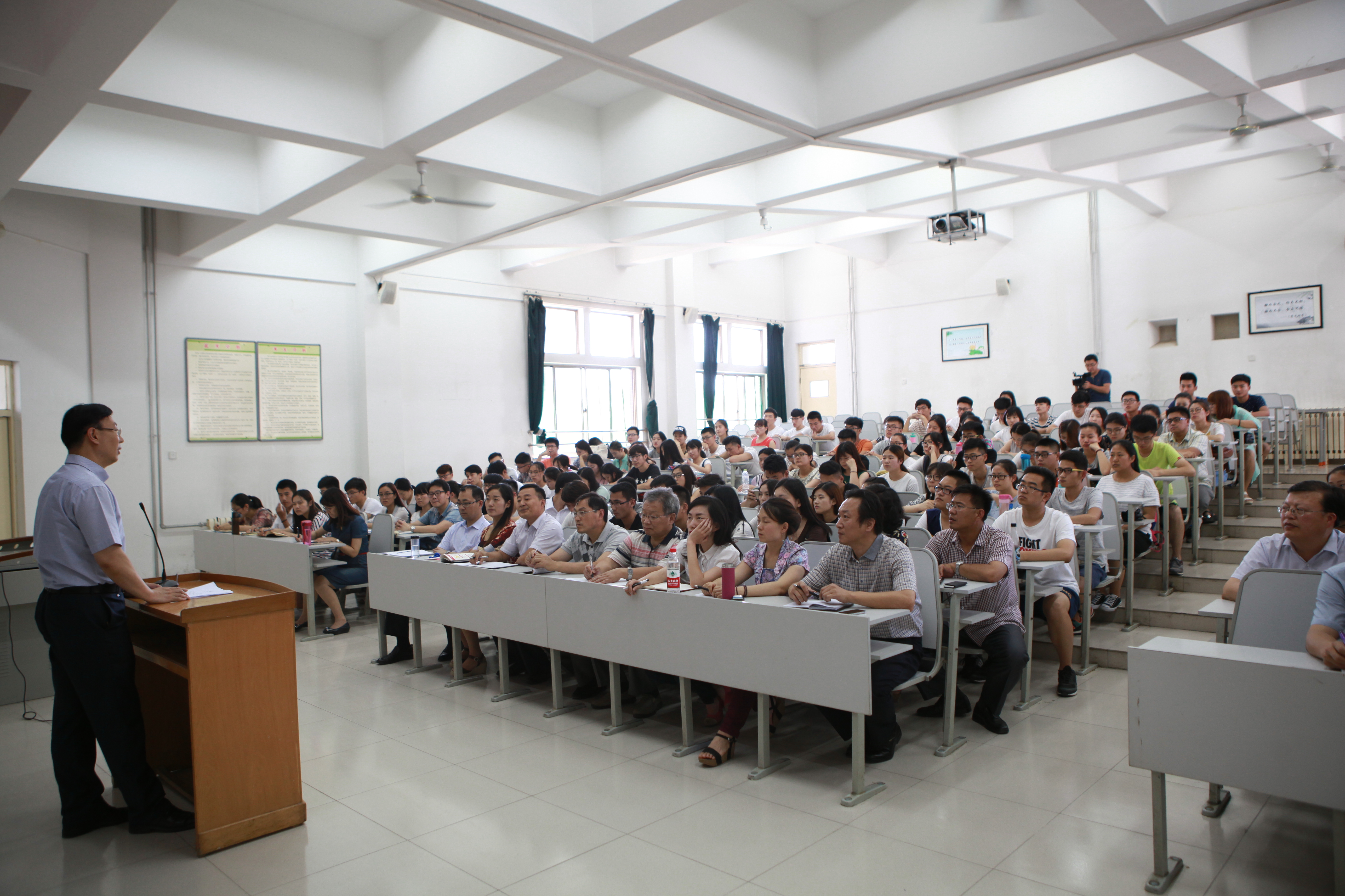 6月16日下午,我校在电教楼210教室举行了“党政干部形势与政策示范课”。共青团山东省委书记、校党委书记张涛结合个人对习近平总书记系列重要讲话精神的学习体会和服务青年的工作经历,为200名山青学子讲授了一堂精彩的“形势与政策”课。