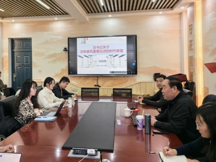 徐国亮教授从新时代家庭家教家风建设高质量发展出发,以习近平总书记关于家教家风的重要论述为核心,围绕重视家教家风有利于提高社会道德水平、重视家教家风有利于加强党的政德建设、习近平总书记关于家教家风的重要论述的主要内容等方面阐发了自己的深刻见解。他认为,崇德向善与做人气节是习近平家教家风之本,精忠报国与自信自强是习近平家教家风之用,共建共享人类命运共同体是习近平家教家风之向。徐教授指出,习近平总书记关于家教家风的重要论述启示我们要强党性、聚合力、谋发展,要注重家教内容的合理性、方法的科学性,与时俱进。整场讲座主题鲜明、内容丰富、论述精辟,既有理论高度,又有实践深度。