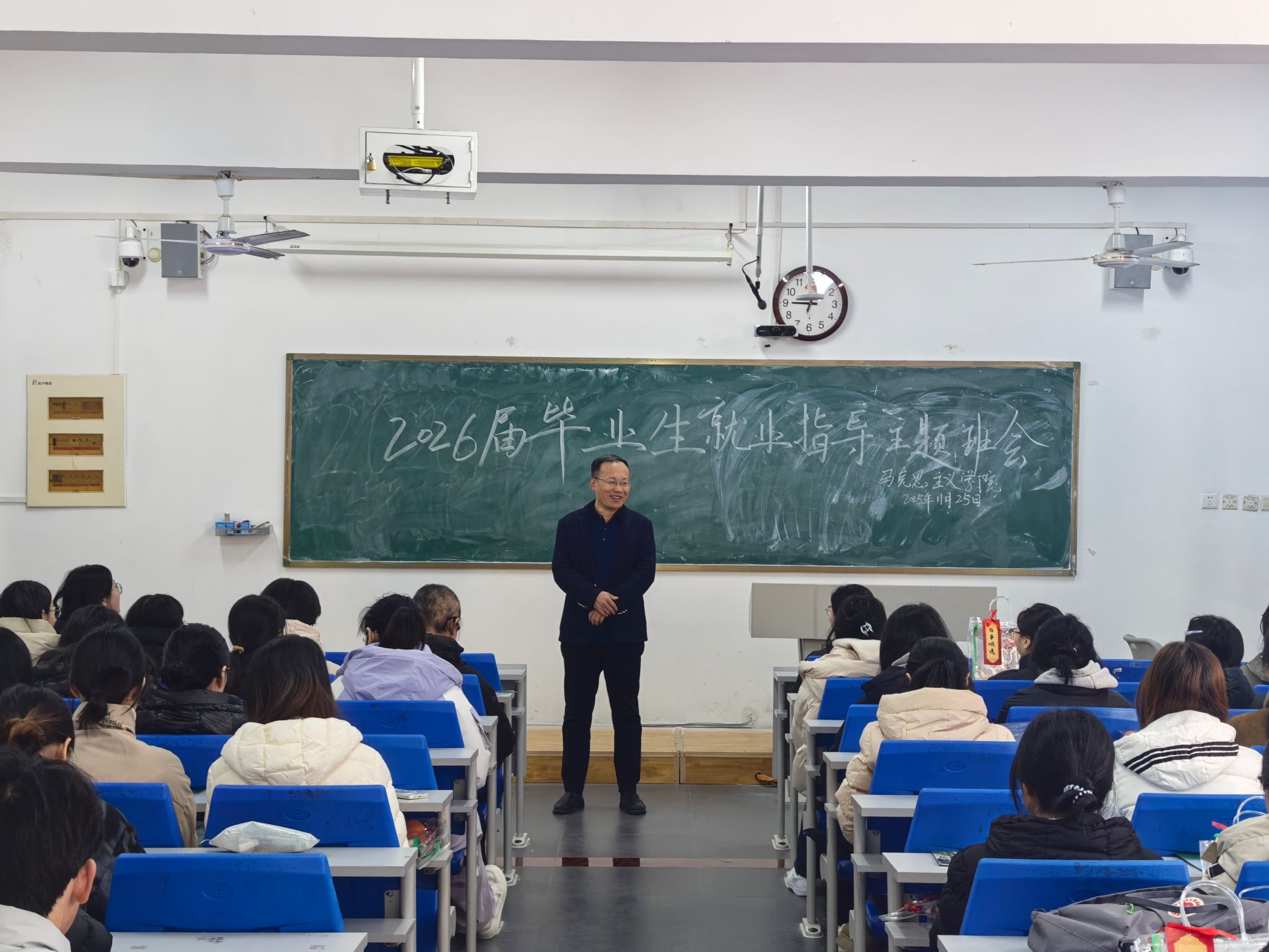 为切实做好就业指导服务工作,帮助毕业生缓解心理压力、传递学院期望,为备考最后阶段注入温暖动能。11月25日,yl6776永利集团举办2026届毕业生就业指导班会。学院院长刘丙元、学院党委书记乔海波、毕业生辅导员王雯雯、班主任高俊丽、张亚楠共同参加活动。