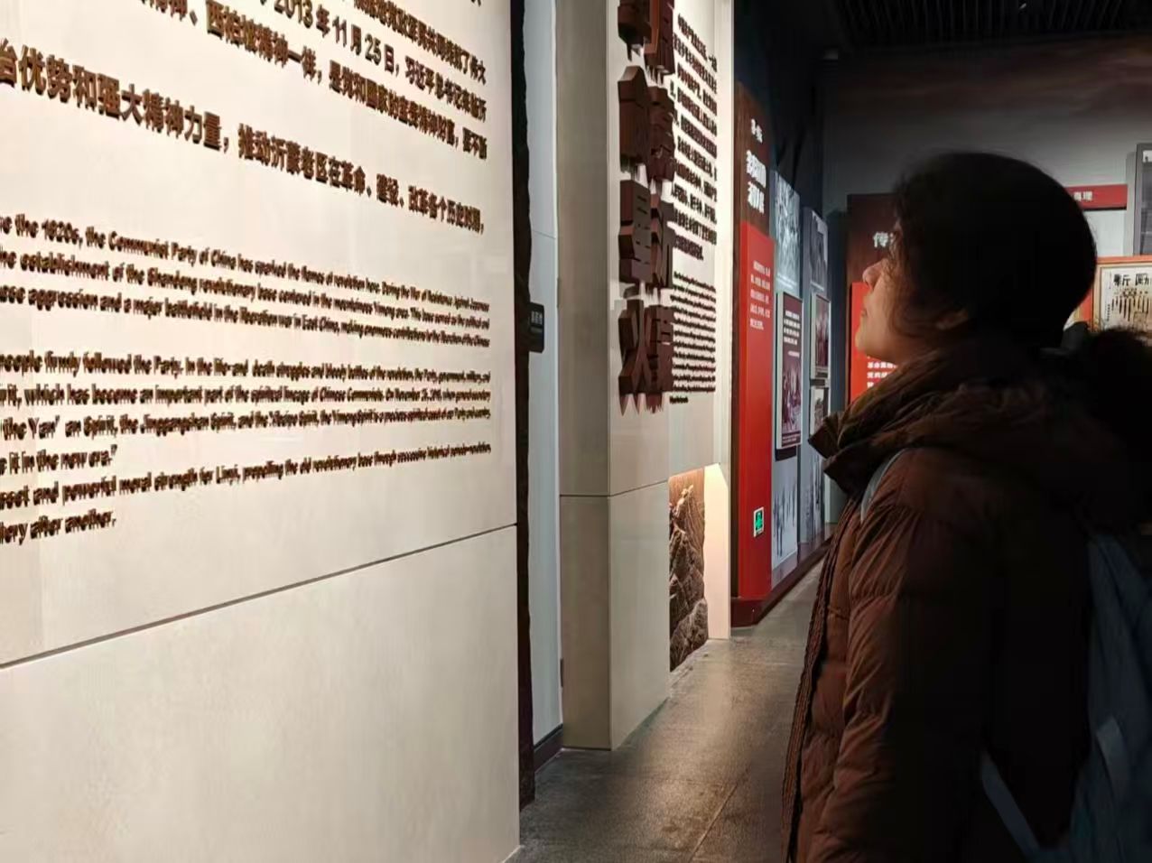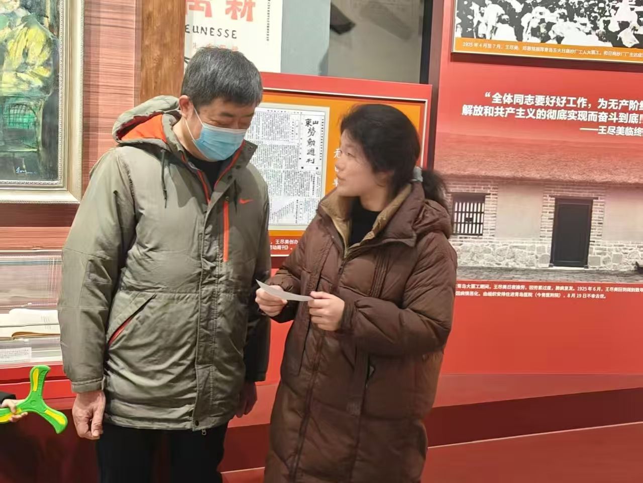 交流过程中,队员们怀着饱满的热情,以生动鲜活的讲述,向参观者再现了沂蒙红嫂用乳汁救伤员、乡亲们以身体架起人桥等感人至深的红色故事,生动诠释了“最后一粒米做军粮,最后一块布做军装,最后一个儿子送战场”的沂蒙人民无私奉献精神,让红色力量直抵人心、浸润心灵。与此同时,队员们结合对话交流内容开展现场调研,认真收集参观者对纪念馆展陈方式、讲解服务、互动体验及红色文化传播形式的意见建议,详细记录参观者对红色故事的理解程度、接受偏好及传播需求,为后续优化红色文化传播方式提供第一手资料。
