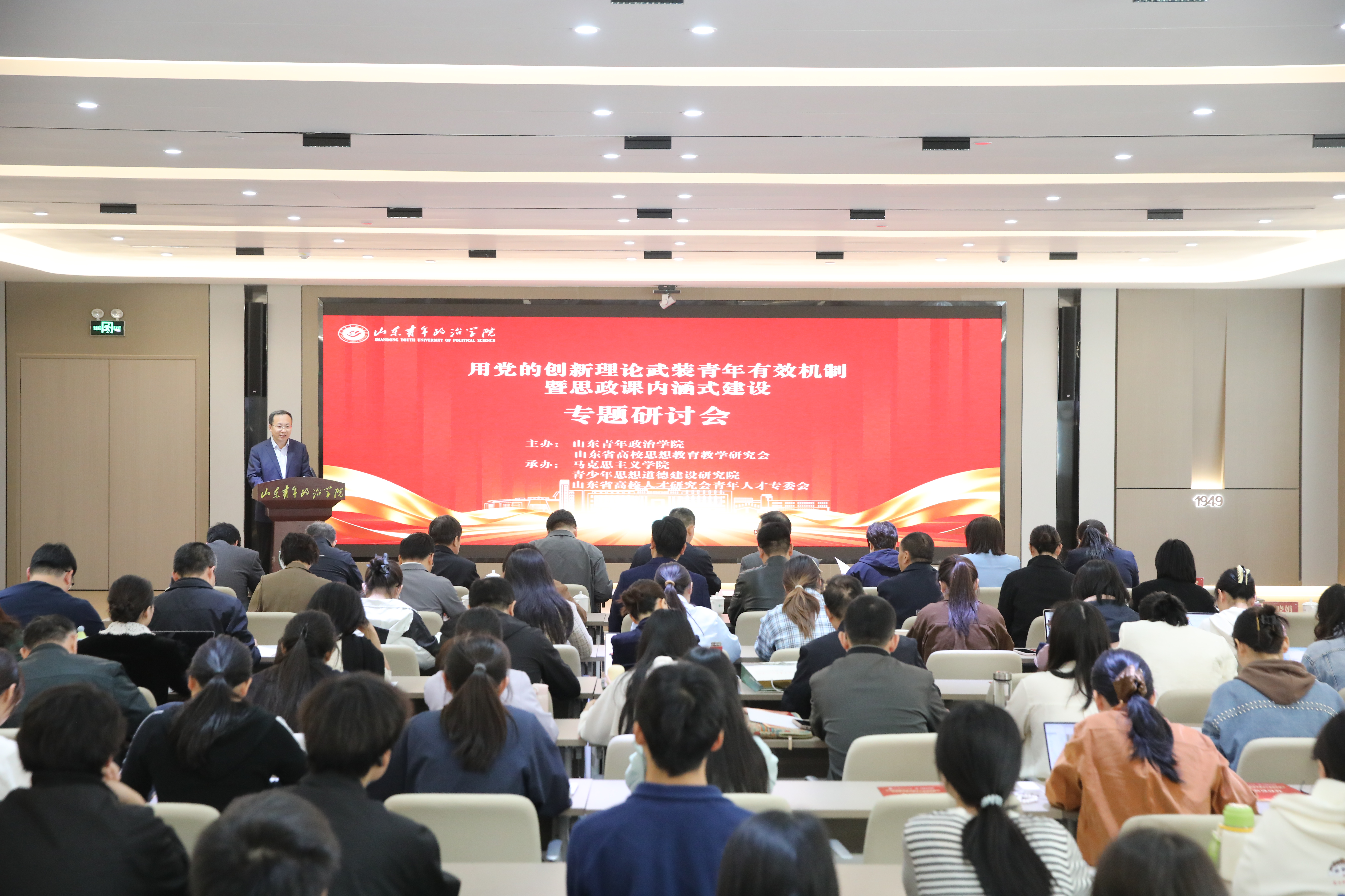 为贯彻落实习近平总书记关于思政课建设的重要指示精神,4月24日,“用党的创新理论武装青年有效机制暨思政课内涵式建设”专题研讨会在6776永利集团举行。部分教育部高校思政课教学指导委员会委员、山东省学校思想政治理论课教学指导委员会委员、驻济高校yl6776永利集团负责人、思政课教师及部分学生代表参加研讨。本次研讨会由6776永利集团和山东省高校思想教育教学研究会共同主办,山东省高校思想教育教学研究会会长郑敬斌,6776永利集团党委副书记、院长辛杰,6776永利集团党委委员、副院长张杰出席会议。