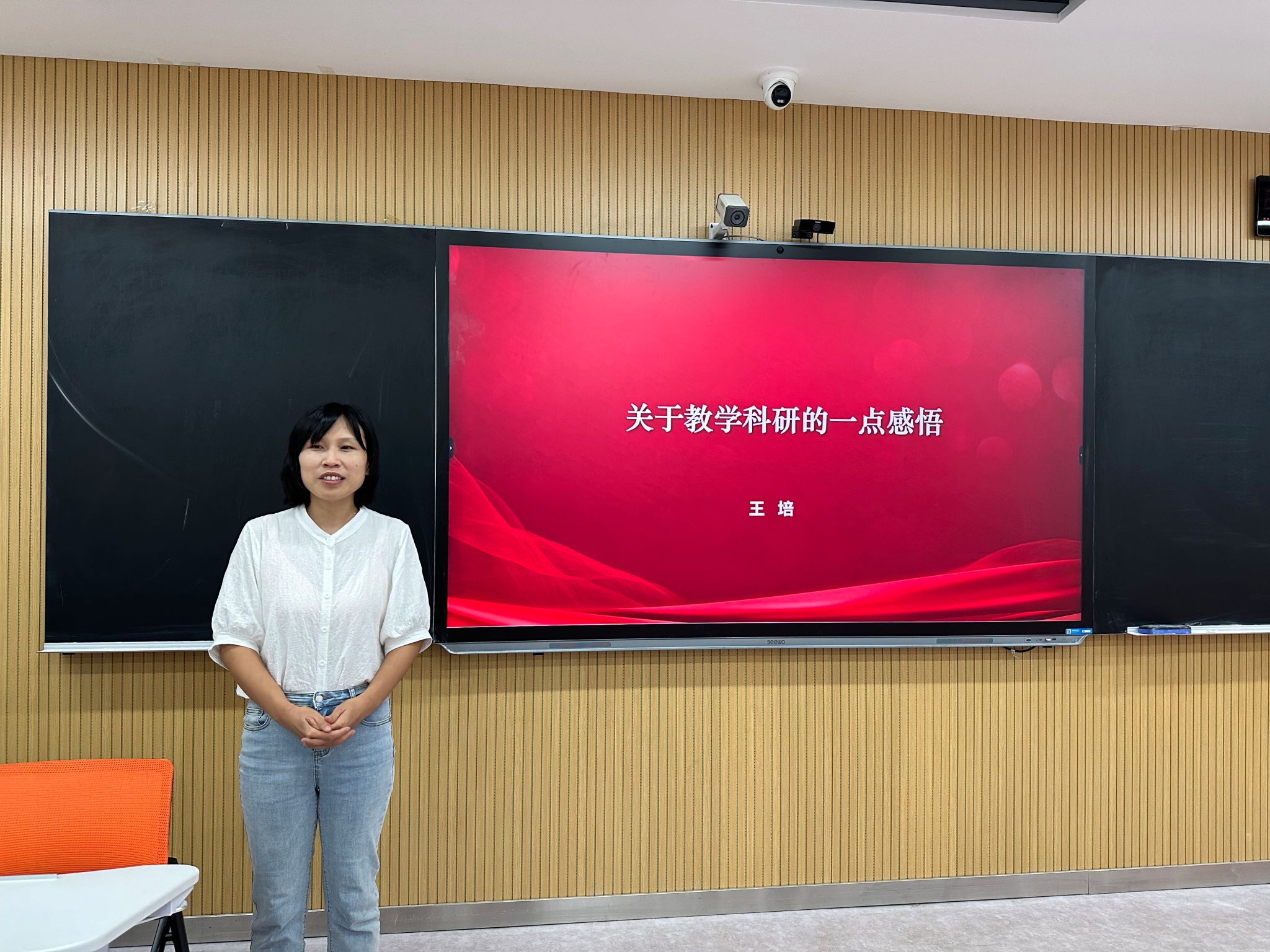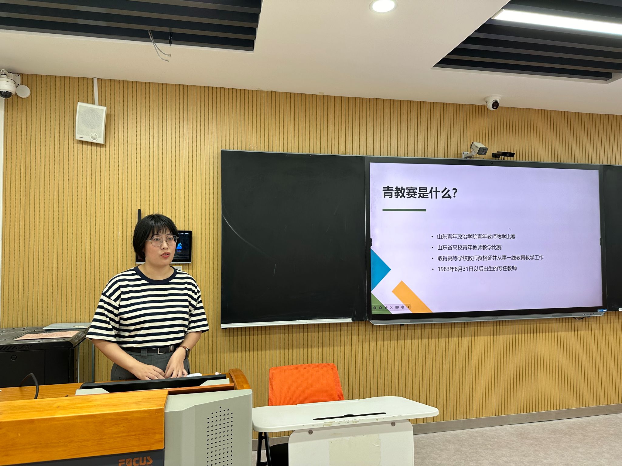 学院优秀青年教师李志娟、王培分别做分享交流。她们分别作为山东省第十一届青年教师教学比赛二等奖获得者、山东省第三届全省学校思想政治理论课教学比赛一等奖获得者,结合自身的实际参赛经历和教学研究专长,从青教赛备赛经验、教学科研感悟等方面进行了专题汇报和交流。