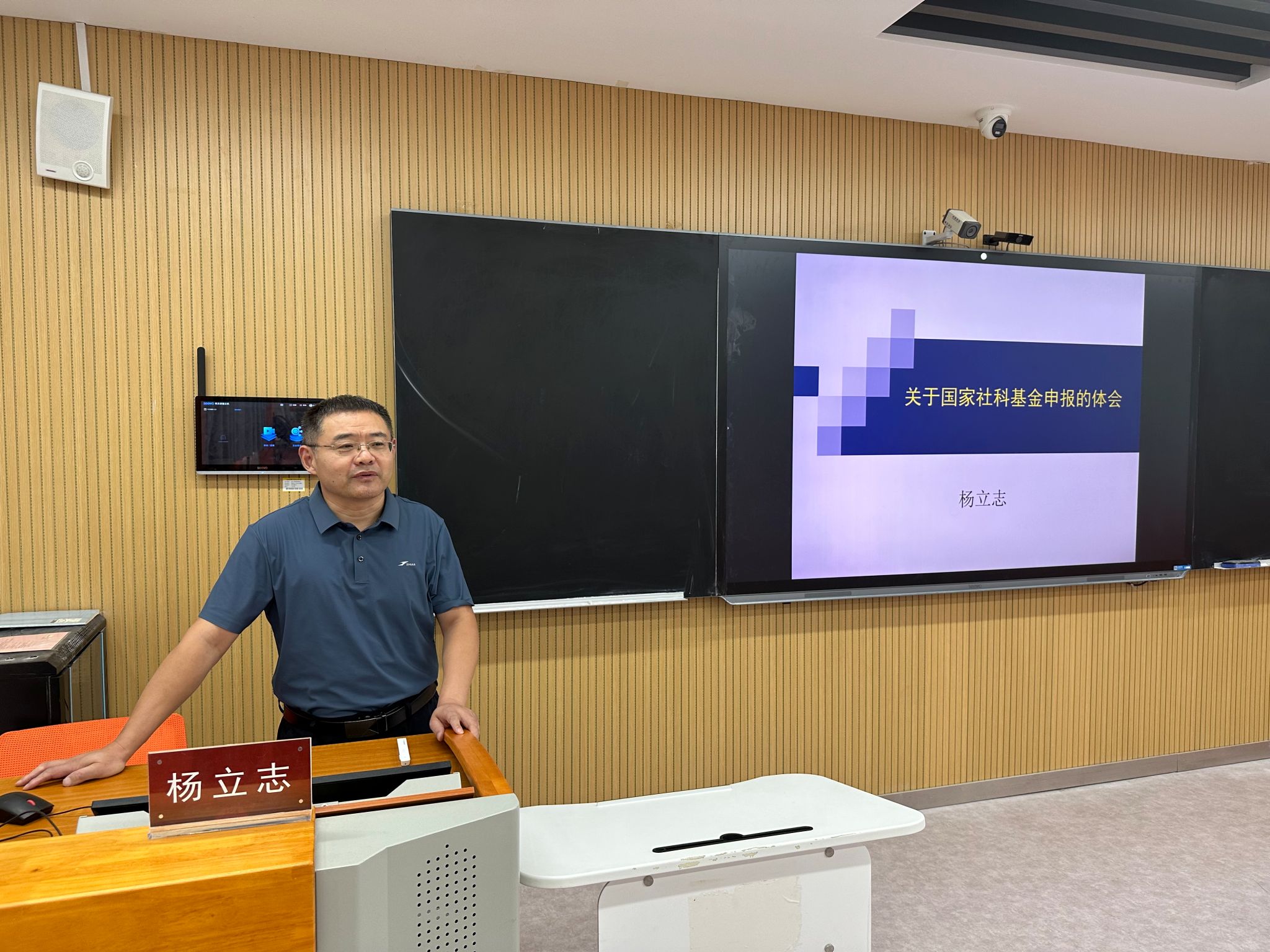 济南大学yl6776永利集团院长杨立志教授围绕国家社科基金项目申报作了专题辅导报告。杨教授结合自身成功申报经验,从项目选题、论证技巧等方面细致讲解了课题申报方法和相关技巧。报告结束后,杨教授与教师们进行了亲切的交流与讨论,并针对老师们提出的问题给予了耐心细致的解答。