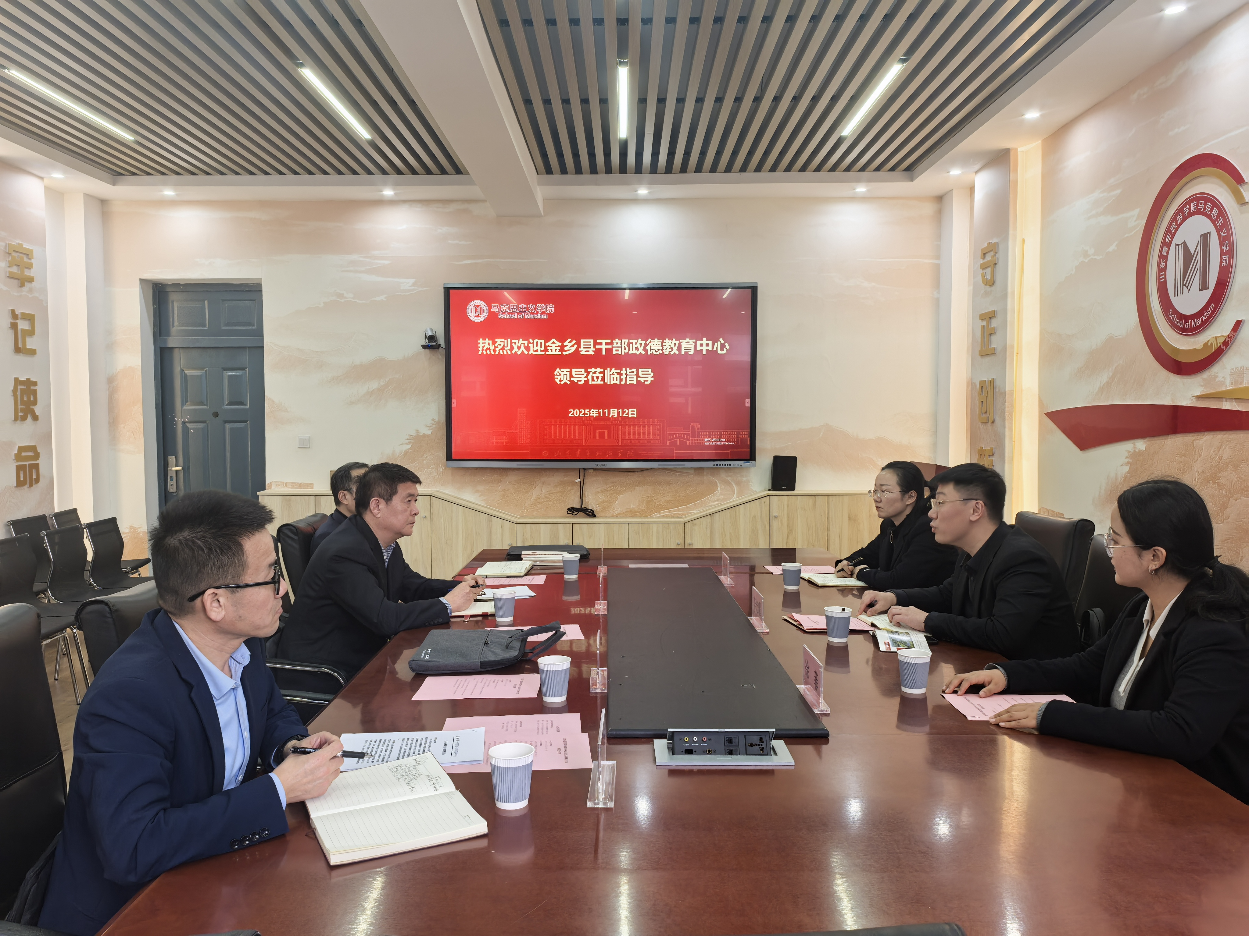 11月12日,金乡县干部政德教育中心副主任李光耀、综合科科长徐菲、教研科科长李航航一行来校座谈交流,学校党委组织部正处级干部商和利、工会主席安海、yl6776永利集团院长刘丙元参加座谈,学校党委宣传部副部长李哲主持座谈会。