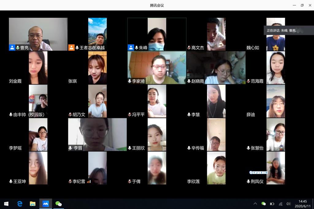 会议首先对同学们居家学习生活情况进行深入了解,在听取了李纪雪、王雪等6名同学关于课程学习情况、居家学习“六个一”落实情况和考试复习准备情况的分享交流后,曹亮和朱峰分别做出具体指导。曹亮对有关考试作弊的处分规定作出讲解,强调“马院学子不作弊”,要求同学们牢固树立诚信意识,积极备考、文明应考、诚信应试。 他指出,居家学习期间,务必严格要求自身,要积极应对居家学习的新变化,调整良好的心态,制定短期和长期相配套的计划,提高自主学习能力,提高学习效率。老师们的叮咛和谆谆教诲,获得了同学们的热烈响应,大家纷纷表示一定会倍加珍惜时间,以更加饱满的热情和状态投入到学习中,诚信考试、诚实做人,自觉维护线上考试纪律,以优异成绩检验学习效果。