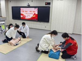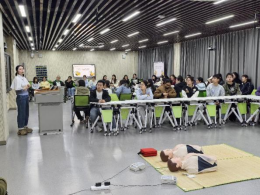 在理论讲解环节,讲解人员系统讲解了心肺复苏术(CPR)及自动体外除颤器(AED)的相关知识及操作要点,着重强调在心脏骤停发生后的“黄金四分钟”内进行有效急救的重要性,并通过人体模型结合现实情境演示急救全过程。