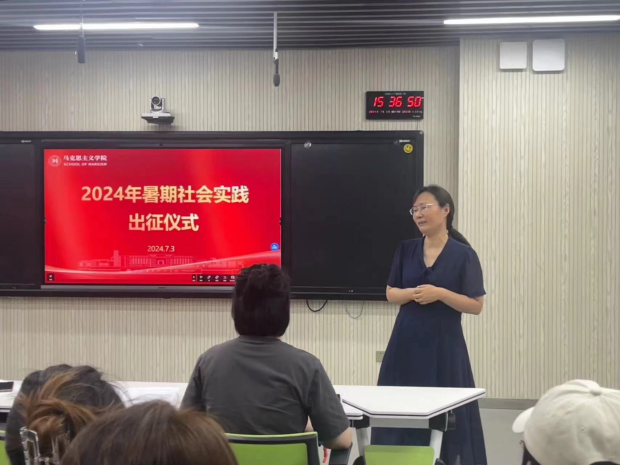 出征仪式上,社会实践团队负责人代表作分享发言,表达了投身社会实践的决心,号召同学们一起在实践中感悟思想伟力、厚植乡土情怀、提升实践本领,展现山青学子风采。副院长魏晓娟就实践调研作动员讲话。她指出,调查研究是我们学好专业的基本功,是将理论知识与实践相结合的有效方式。她勉励同学们要扑下身子、深入乡村、走向社区,坚持问题导向,干实事、谋实招、求实效。上好社会实践这堂大思政课。随后,社会实践指导教师李志娟、苏小果、王雯雯分别从专业实习、大学生讲思政课公开课展示活动、实践安全教育等角度,引导学生开展社会实践,在社会课堂中躬身实践、学思践悟。