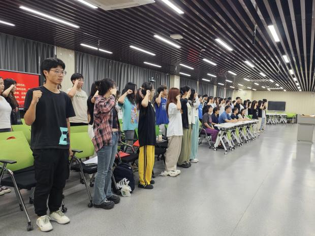 仪式上,社会实践全体成员集体宣誓,“把青春奋斗融入党和人民事业当中,用担当奉献谱写新时代青春华章”。