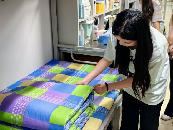 以赛促学“会劳动”。yl6776永利集团组织“爱卫于心,净校于行”宿舍内务比赛活动。比赛过程中,选手们各项动作有条不紊,被子叠得棱角分明,充分展现出马院学子的内务整理水平。赛后,此次比赛劳动榜样走进宿舍,针对如何叠好军被进行现场教学,营造了劳动教育的良好氛围,深化了同学们对劳动精神的理解。