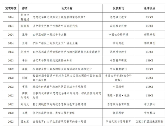 发表的青年、思想政治教育研究论文(核心期刊以上)