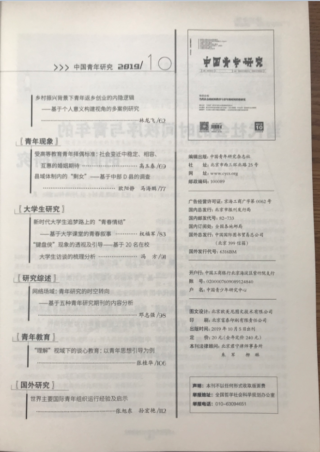 发表的青年、思想政治教育研究论文(核心期刊以上)