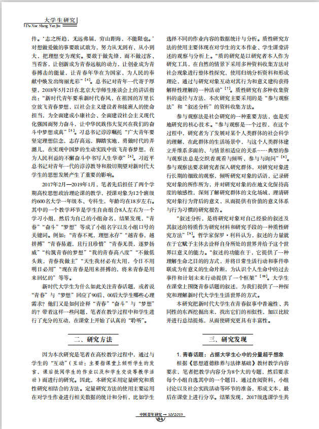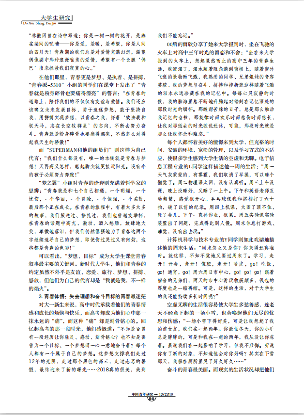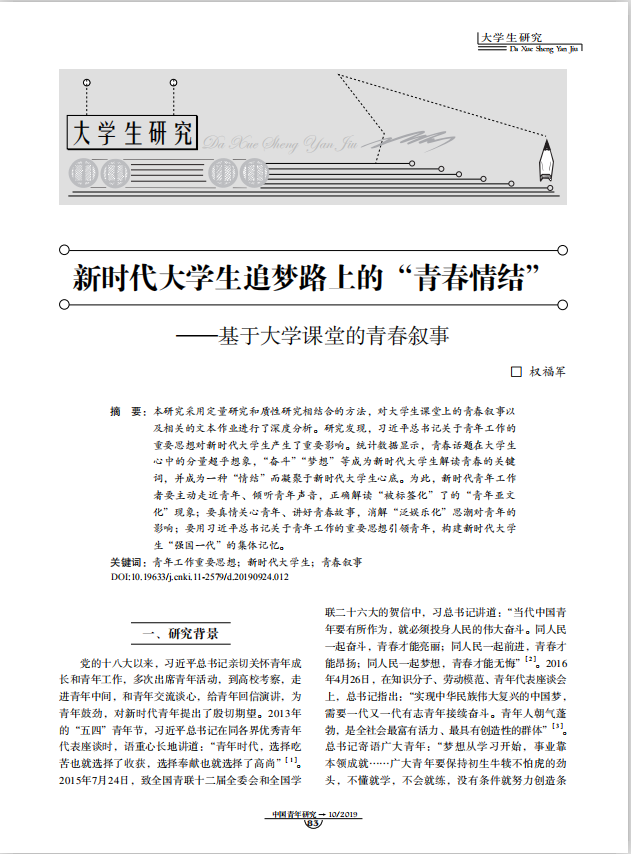 新时代大学生追梦路上的“青春情结”——基于大学课堂的青春叙事