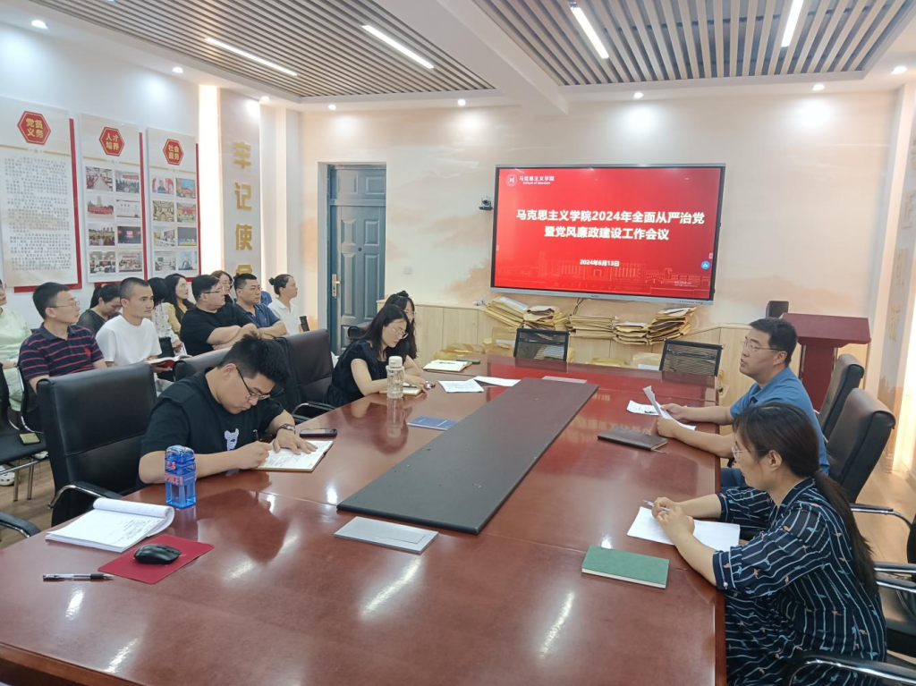 会议强调,要深入学习贯彻习近平总书记关于党的自我革命的重要思想,深刻把握学院全面从严治党工作新形势新要求。纵深推进全面从严治党,涵养党风政风、院风学风、师德师风。强化日常教育管理,以群众身边不正之风和腐败问题集中整治为抓手,精准查摆风险点,筑牢“防护墙”。强化底线思维,深入推进新时代廉洁文化建设融入学院工作。要扛牢扛稳全面从严治党政治责任,不断提升管党治党、办学治院能力水平。各党支部书记要知责履责、明责尽责,切实把思想和行动统一到党中央决策部署和省委、学校党委工作要求上来,严格落实党支部书记第一责任人责任,坚决扛起全面从严治党主体责任。坚持党性党风党纪一起抓,实现责任覆盖无盲区、压力传导无衰减、压实责任动真格,共同营造风清气正的学院政治生态。善于从党的创新理论中找理念找思路找方法找举措,健全完善责任体系,压紧压实责任链条。以党纪学习教育为契机,狠抓学院作风建设,实现八小时内外监督全覆盖。要增强行动自觉,确保各项任务落实落地。持续巩固主题教育成果,深刻剖析腐败典型案例,树立践行正确的政绩观和事业观。不断提升新形势下的工作能力,深入学习贯彻习近平总书记对学校思政课建设作出的重要指示精神和视察山东重要讲话重要指示精神,牢牢把握学校建设重点任务,把严的要求和实的举措有机融合,推进作风建设常态化长效化与提升学院管理效能相结合,进一步把高质量党建优势转化为高水平发展优势,为学院建设提供坚强保障。