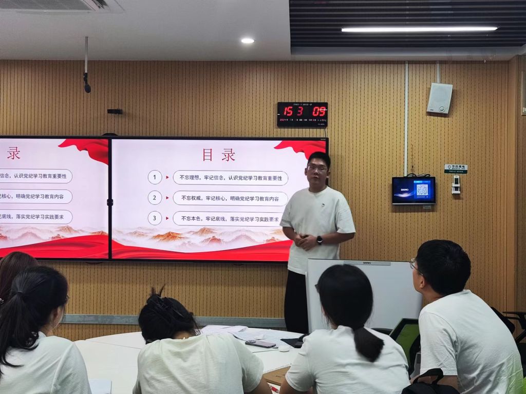活动过程中,学生党员代表分别以“党纪学习要知纪于心、立纪于身、化纪于行”、“学党纪,迎七一,重实践”、“知敬畏,存戒惧,守底线”、“追‘七一’之光,赴‘赶考’之路”、“上好第一课,走稳第一步”为题,结合党纪学习教育收获和自身学习工作感悟,为学院入党积极分子作微党课展示,从党的理论创新到实践探索,从党的纪律建设历程到党纪学习教育,深入浅出地分析了党的纪律对于党员行为的规范作用,加强入党积极分子对党纪的深入理解和认识。随后,教师党员魏鲁宁在总结发言中指出,全体党员及入党积极分子要自觉加强纪律修养,把遵规守纪内化于心、外化于行,以党的纪律为准则,不断提高自己的政治素质和业务能力,铭记党纪,筑牢信仰之基。与会学生纷纷表示,将在今后的学习工作中牢记初心使命,矢志奋斗向前,以更加昂扬的斗志,为奋力谱写中国式现代化建设作出更大的贡献。