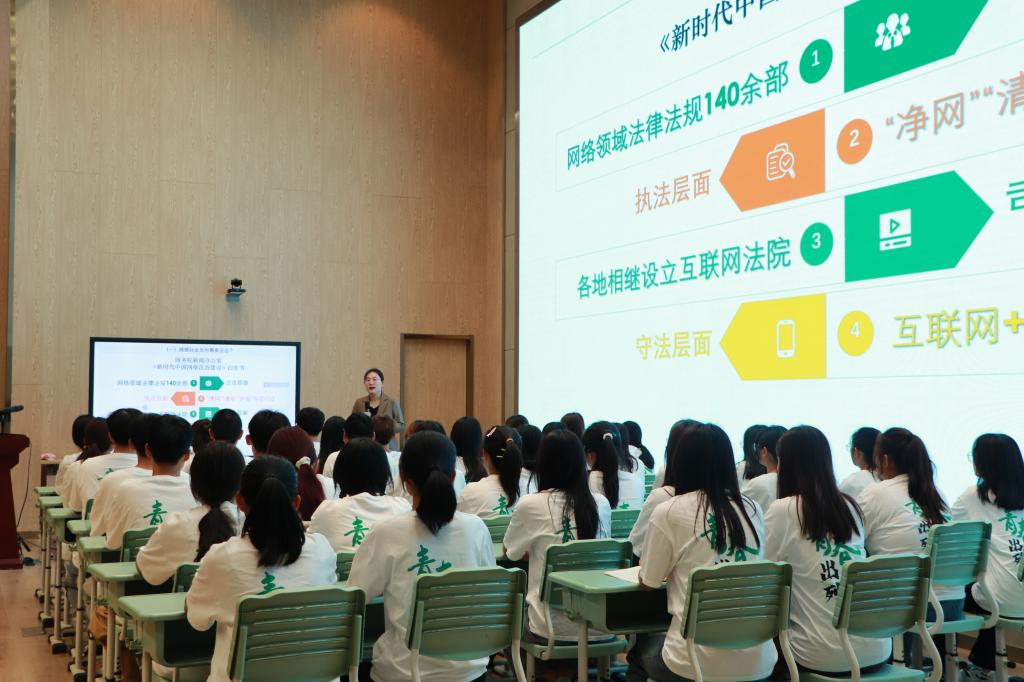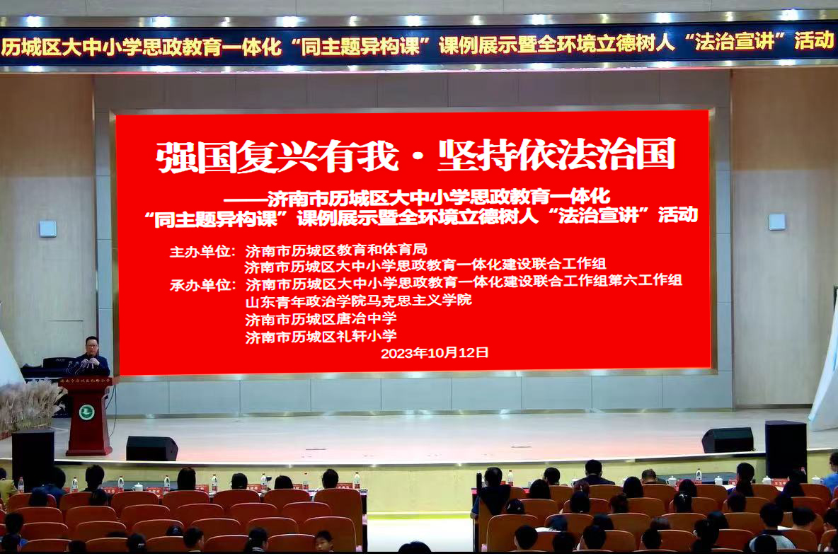 近日,济南市历城区大中小学思政教育一体化“同主题异构课”课例展示暨全环境立德树人“法治宣讲”活动在历城区礼轩小学举办。来自历城区小学、中学和大学三个学段的三名优秀思政课教师围绕“强国复兴有我坚持依法治国”主题,分别设计并展示了课例。其中,大学学段的课例展示由我校yl6776永利集团青年教师焦轲承担,她以《法治护航网络文明 慎独“键”证守法公民》为题,为大一新生上了一堂精彩的思政课。