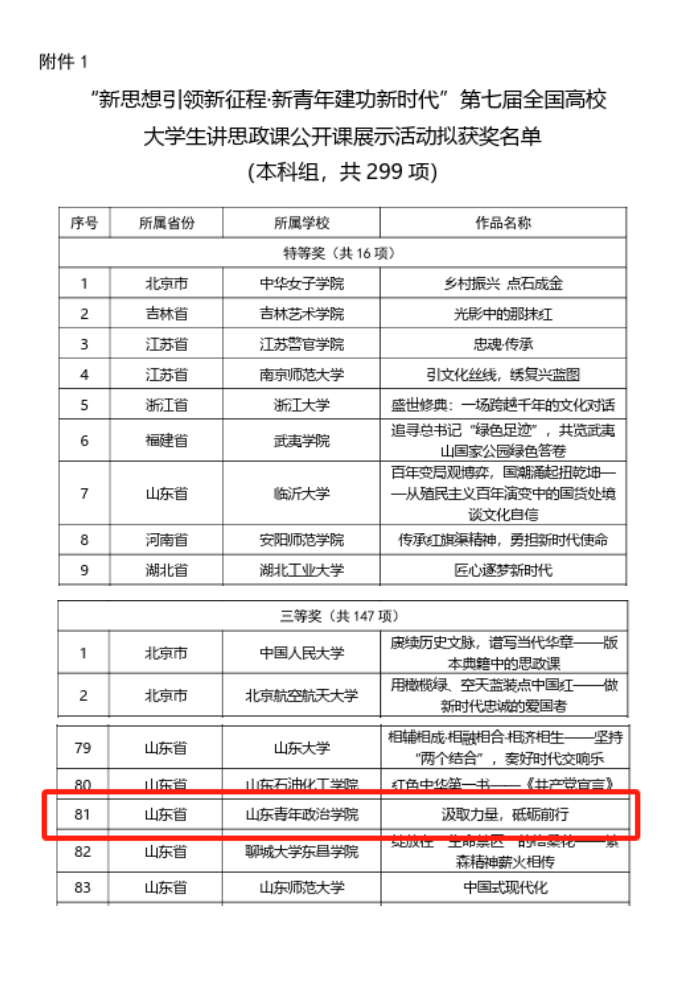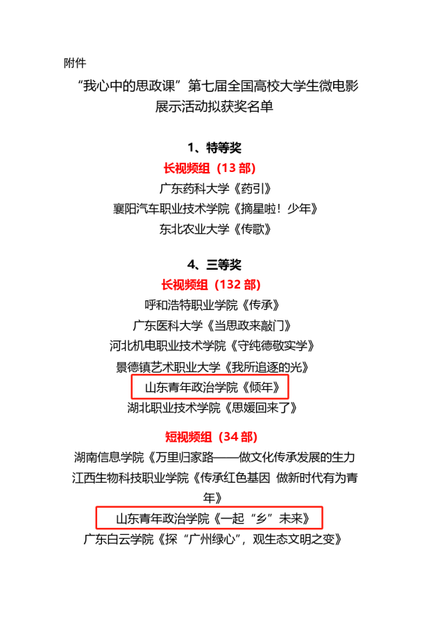 近日,教育部组织开展的习近平新时代中国特色社会主义思想大学习领航计划主题教育活动评选结果公布,我校推送的作品《汲取力量,砥砺前行》获“新思想引领新征程·新青年建功新时代”第七届全国高校大学生讲思政课公开课展示活动本科组全国三等奖;《一起“乡”未来》《倾年》获“我心中的思政课”第七届全国高校大学生微电影展示活动全国三等奖。