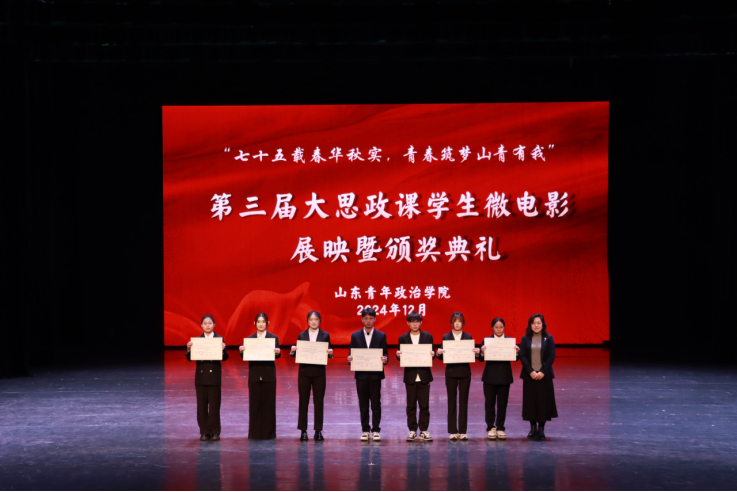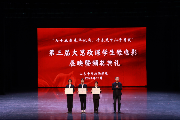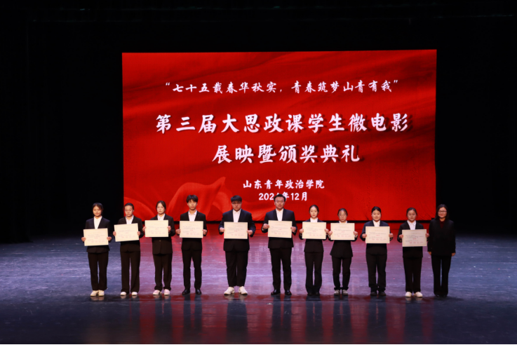 学校党委副书记刘涛,学校党委委员、宣传部部长石瑞宝,学生工作处处长温永慧,团委书记孙明岳为大学生讲思政课公开课、“我心中的思政课”微电影展示活动一等奖、二等奖、三等奖及优秀奖作品主创团队代表颁奖。