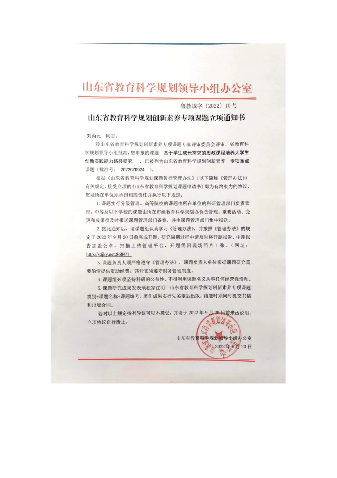 刘丙元《基于学生成长需求的思政课程培养大学生创新实践能力路径研究》