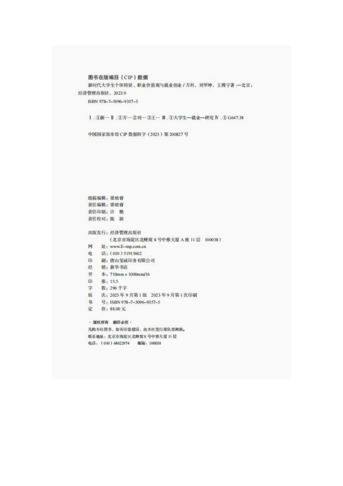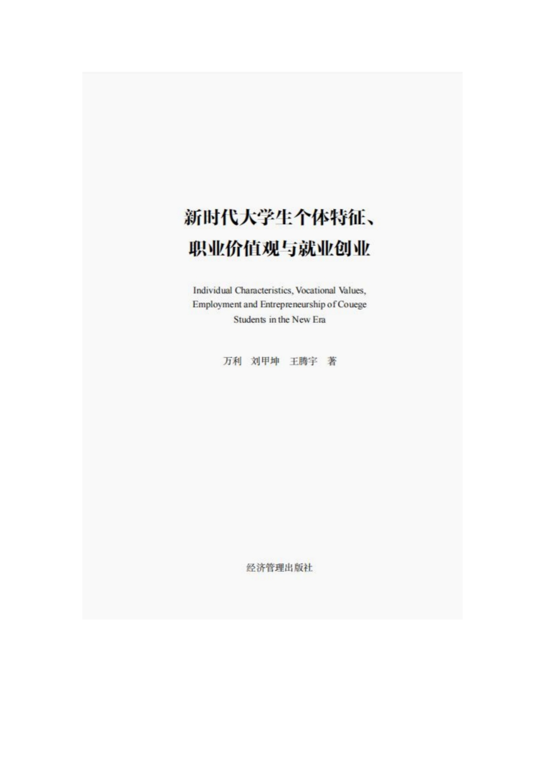 万利《新时代大学生个体特征、 职业价值观与就业创业>》