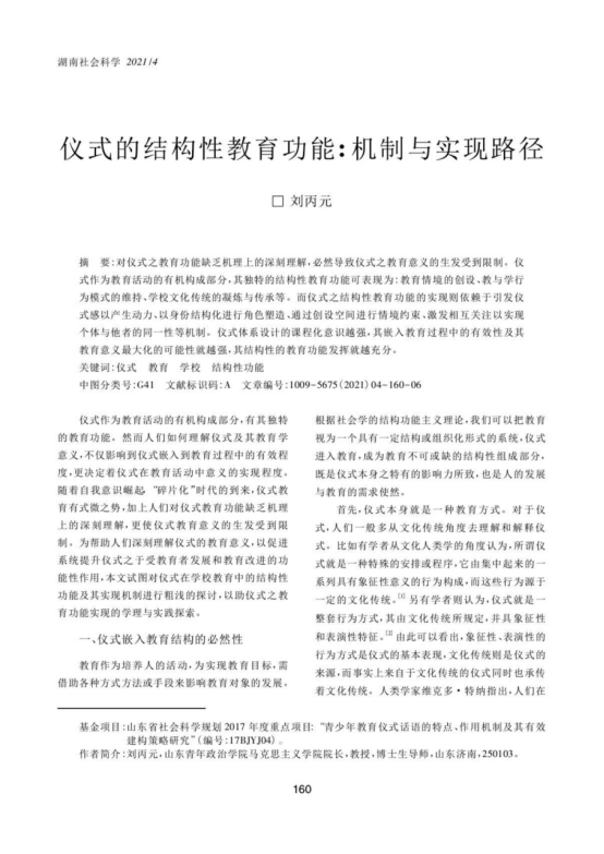 刘丙元《仪式的结构性教育功能:机制与实现路径》
