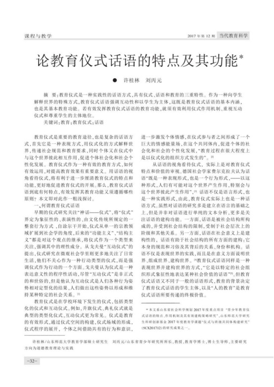 刘丙元《论教育仪式话语的特点及其功能》