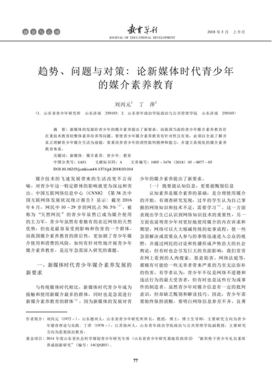 刘丙元《趋势、问题与对策:论新媒体时代青少年的媒介素养教育》