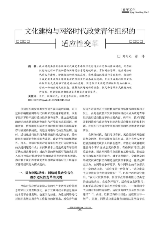刘丙元 文化建构与网络时代政党青年组织的适应性变革
