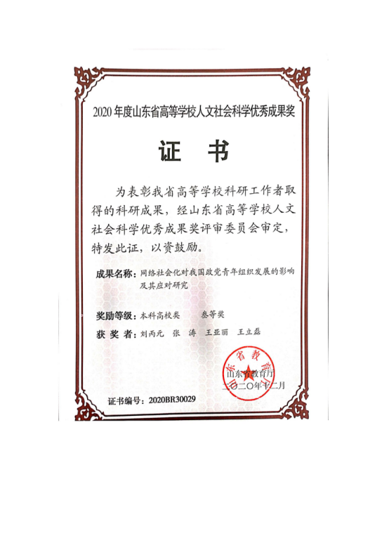 思想政治教育、青年研究所获成果奖励(厅局级以上)