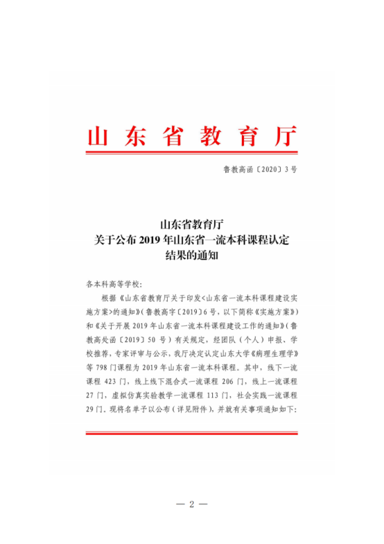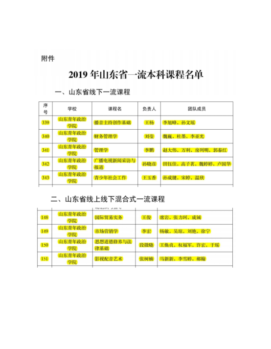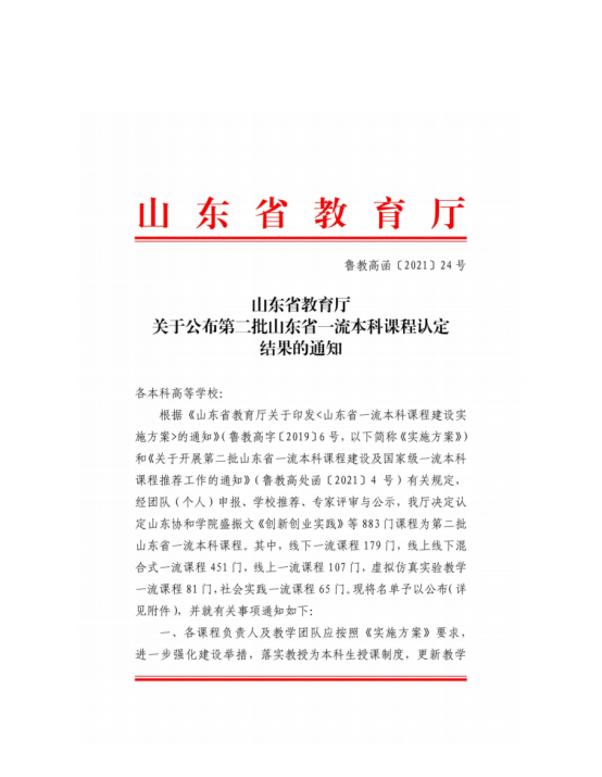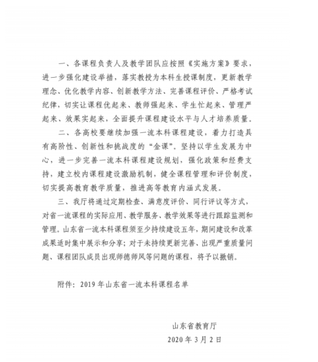 山东省高校一流本科课程