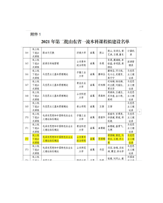 山东省高校思政课“金课”