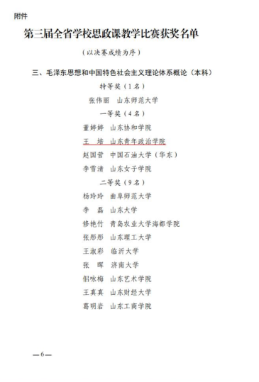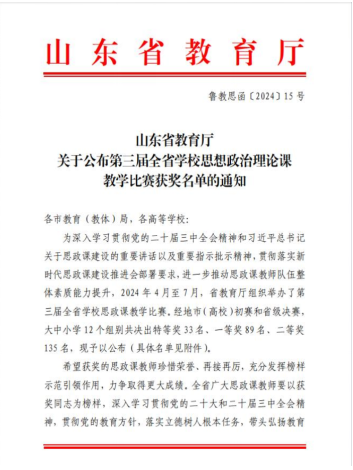 山东省第三届学校思政课教学比赛一等奖