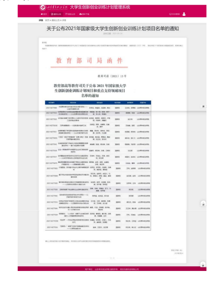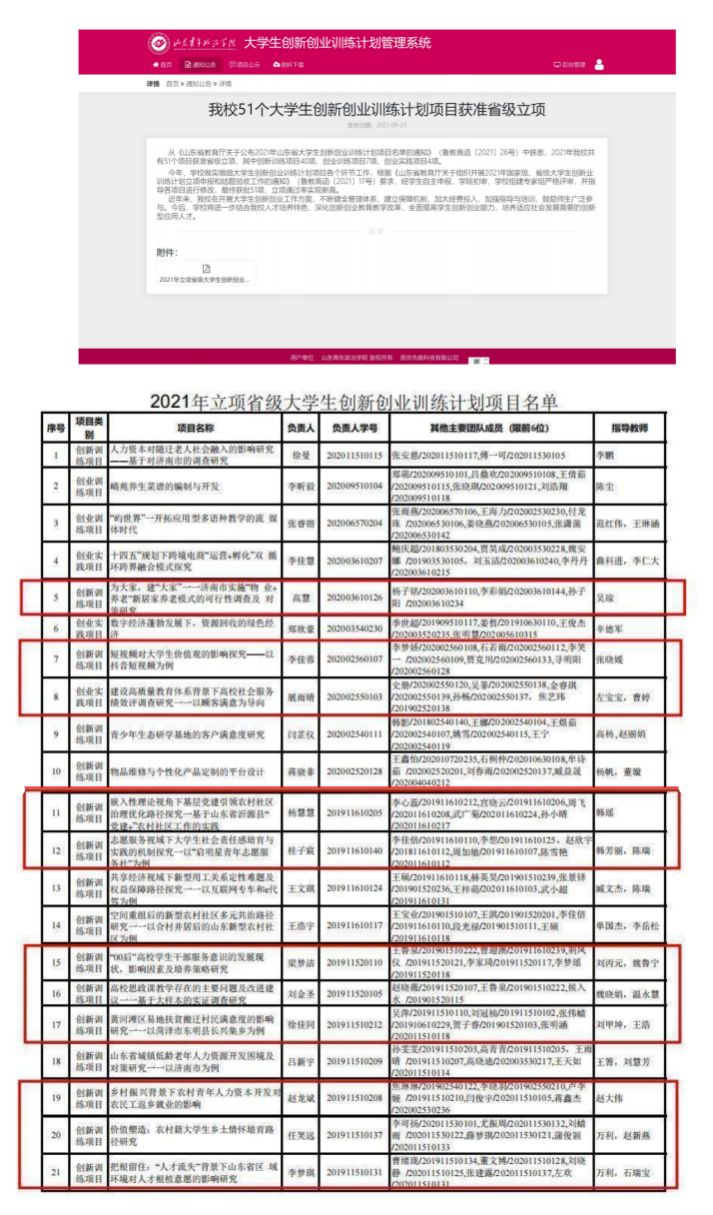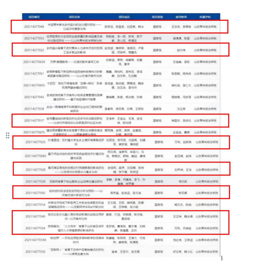 2021年大学生创新创业计划训练项目思政类国家级立项8项、省级立项20项