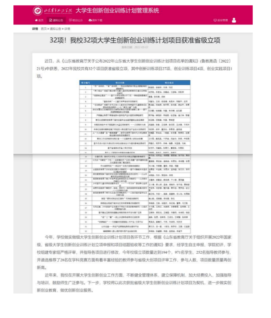 2023年大学生创新创业训练计划项目类国家级立项7项,省级立项10项