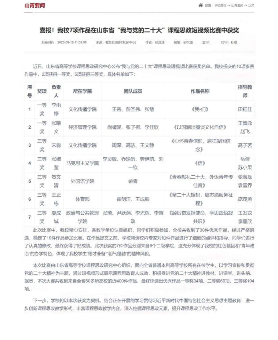 “我与党的二十大”课程思政短视频比赛省级三等奖