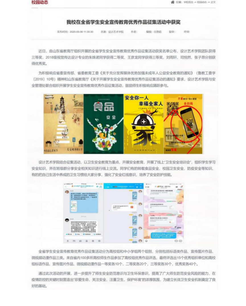 全省学生安全宣传教育优秀作品征集活动获1项团队三等奖、1项个人二等奖、1项个人三等奖和3项个人优秀奖