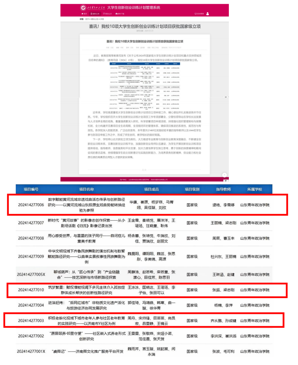 2024年大学生创新创业训练计划项目思政类省级立项3项
