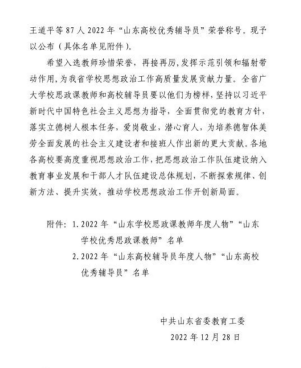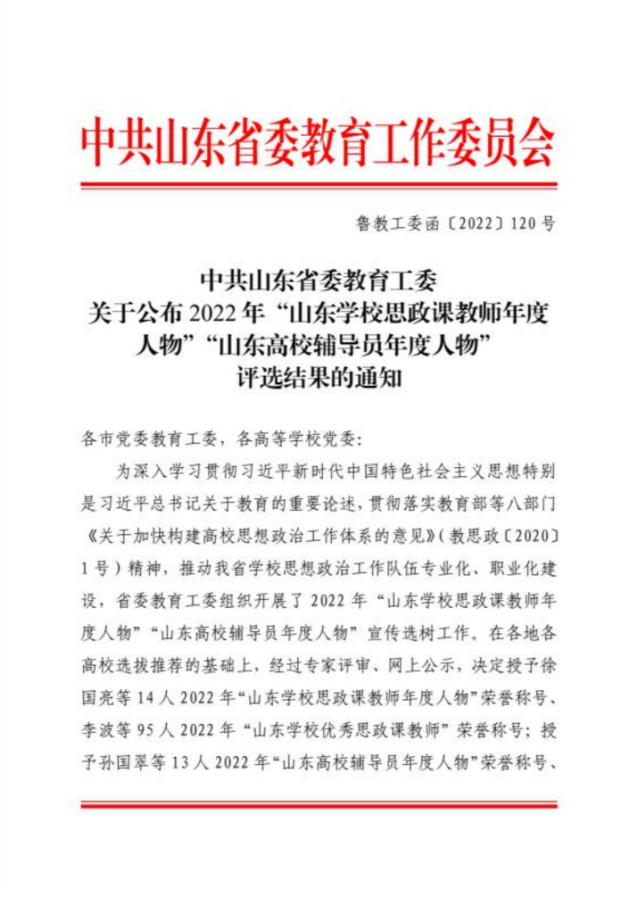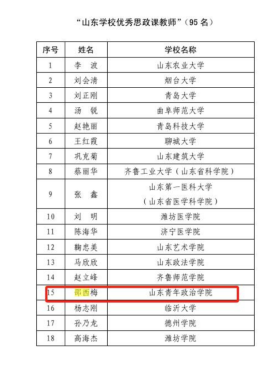 山东省学校优秀思政课教师