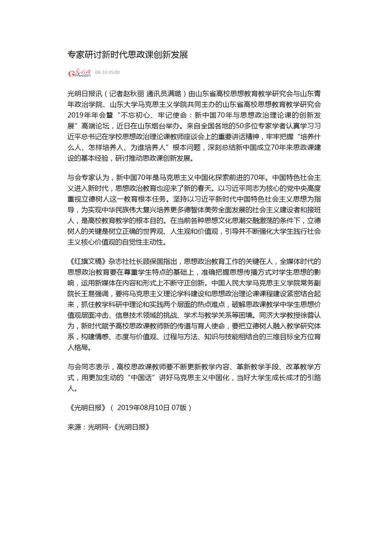 《专家研讨新时代思政课创新发展》-光明网
