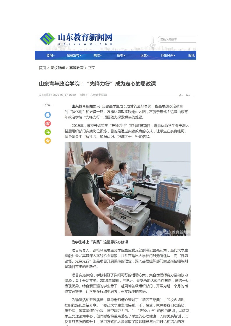 《6776永利集团:“先锋力行成为走心的思政课”》-山东教育新闻网