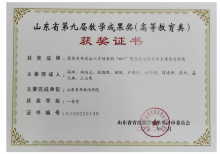 山东省第九届教学成果奖(高等教育类) 一等奖