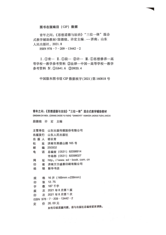《青年之问——思想道德与法治辅助教材》(校本教材)