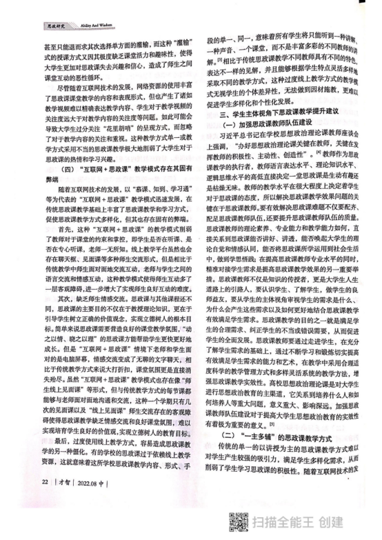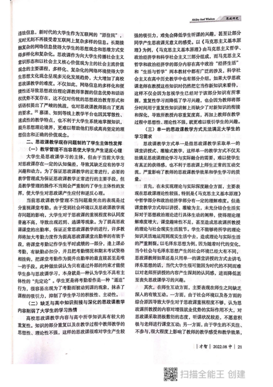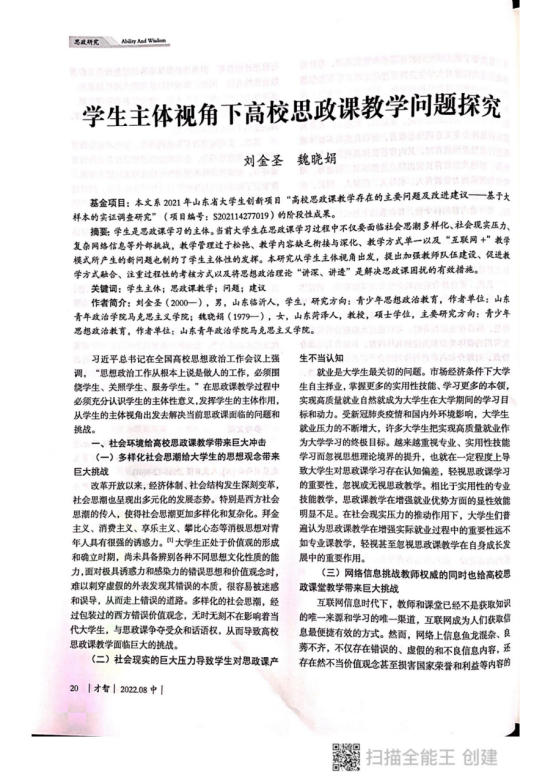 刘金圣 魏晓娟《学生主体视角下高校思政课教学问题探究》