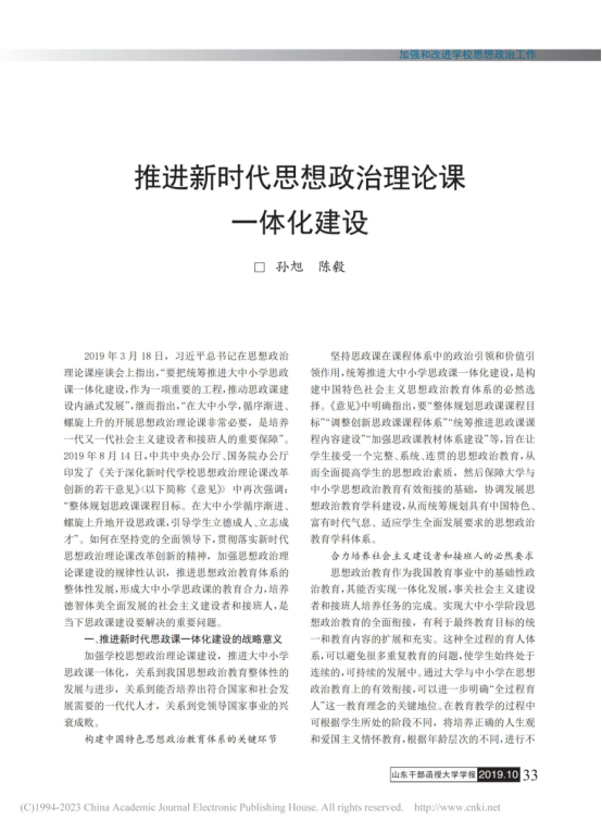孙旭《推进新时代思想政治理论课一体化建设》