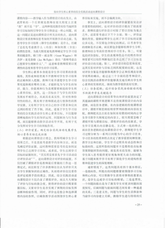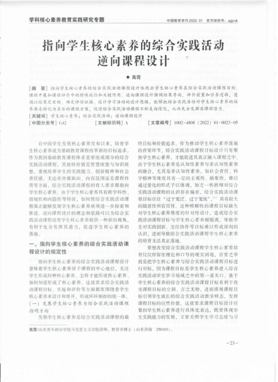 高霞《指向学生核心素养的综合实践活动逆向课程设计》