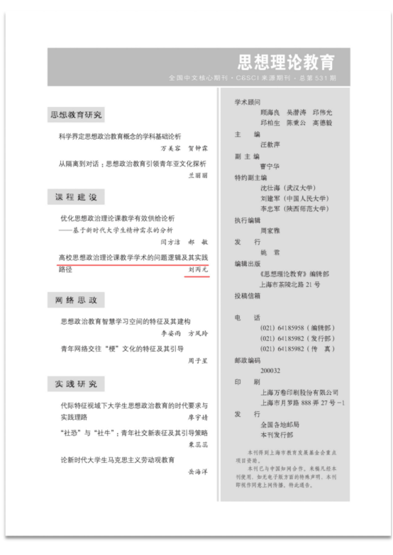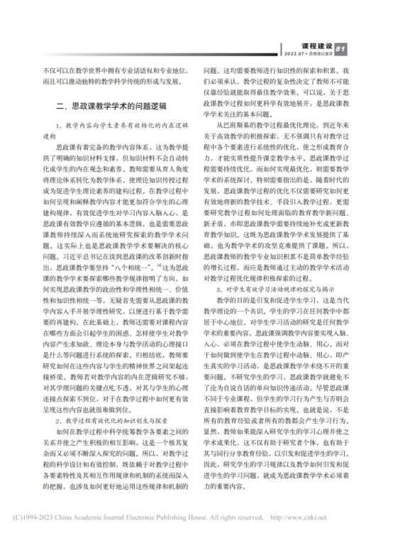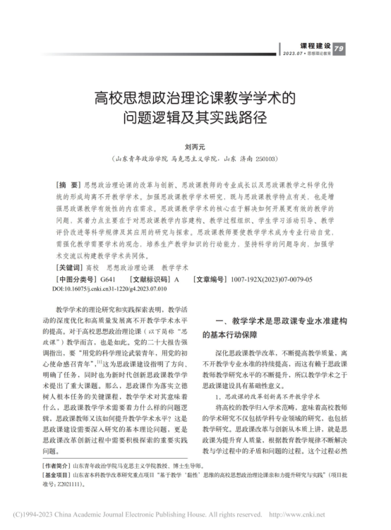 刘丙元《高校思想政治理论课教学学术的问题逻辑及其实践路径》