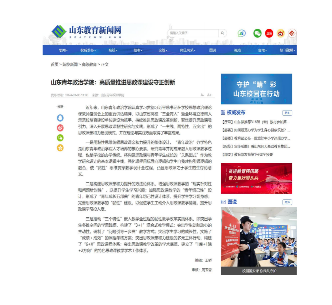部分媒体对学校思政育人成果的报道