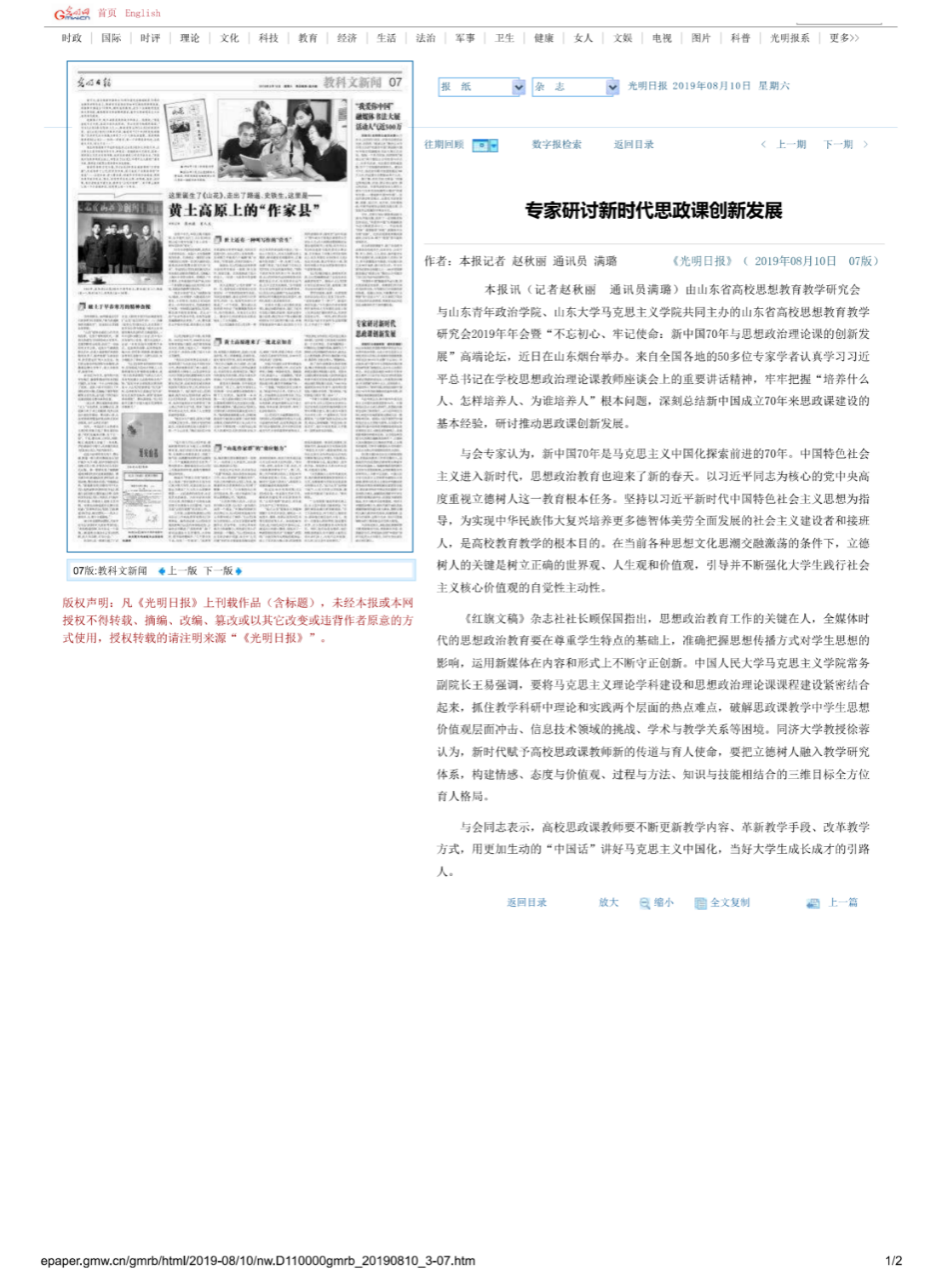 《专家研讨新时代思政课创新发展》